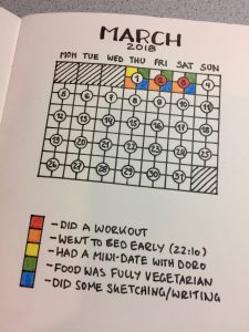 It’s March and it feels like New Year for me. Just one week ago, I dived into a beautiful way of tracking habits, inspired by Sean McCabe. It helps me to get a better overview of the aspects of life that are important to me right now. And it helps to improve them.